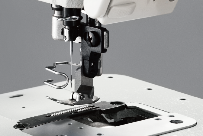 Single Needle Direct Drive Lock Stitcher with Side Cutter, Electronic Feeding System and Thread Trimmer.